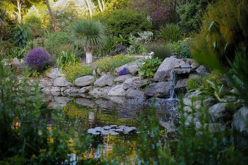Des cascades, bassins peuplés de c arpes Koï, des rocailles de cactus d'Agaves et d'Aloès etc.... un lieu enchanteur au goût de voyage
